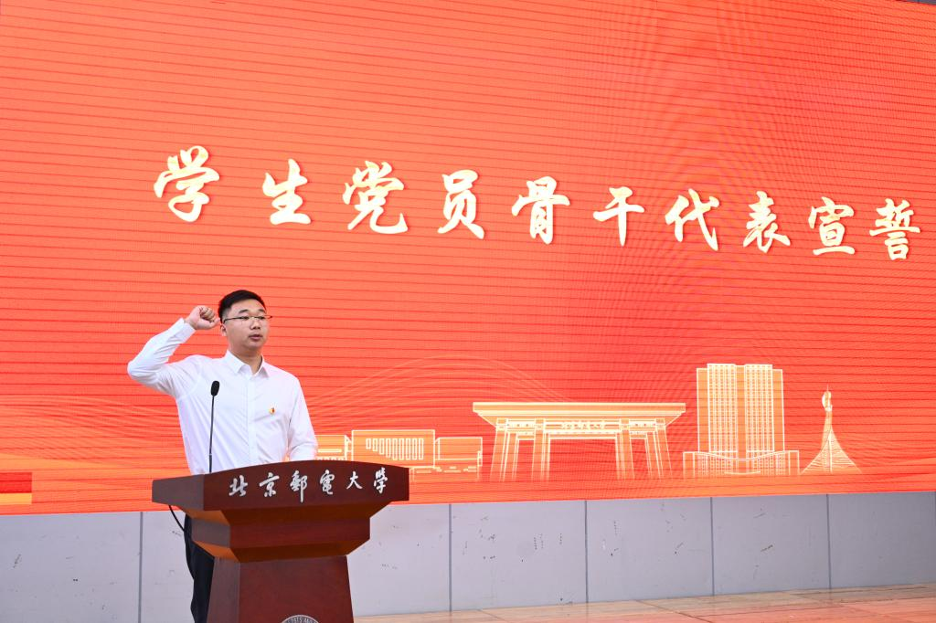 第九期研究生党员骨干培训班副班长、电子工程学院2024级硕士研究生潘岩分享培训经历和学习心得。第八期学生宣讲团副团长、马克思主义学院2024级硕士研究生李书凝以《激发全民族文化创新创造活力,繁荣发展社会主义文化——学习二十届四中全会精神》为题作示范宣讲。第十期研究生党员骨干培训班学员、集成电路学院2025级硕士研究生赵飞扬作为学生党员骨干代表进行宣誓。
