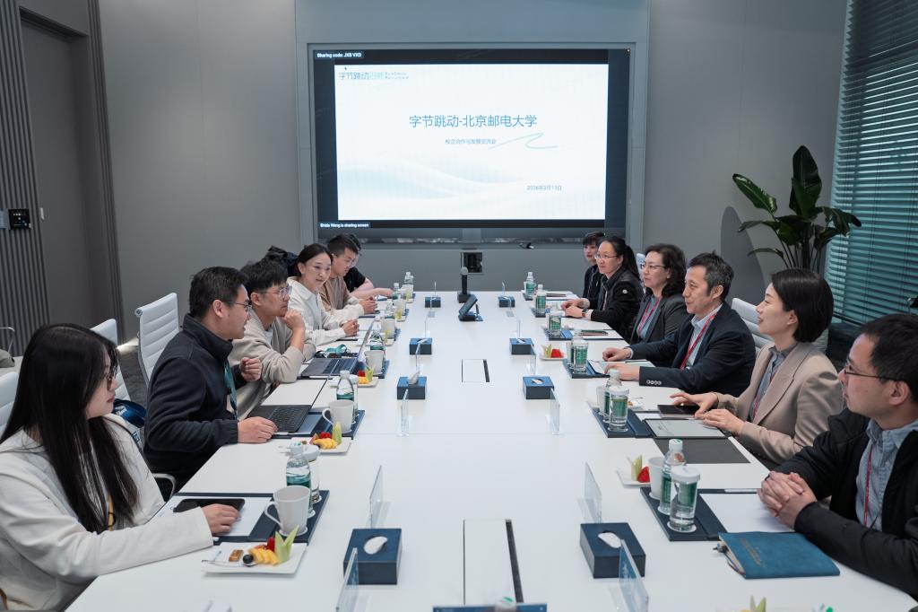 抖音集团为我校近年来主要用人单位,马启华一行全面了解其多元生态布局,以及在数字技术研发、人工智能应用、乡村文旅赋能、中华优秀传统文化传播等领域的实践。校友座谈会上,全球校招负责人龙云,相关技术团队负责人、我校2013届硕士毕业生樊玮及校友代表参加,抖音集团相关负责人对北邮毕业生的专业素养与综合能力给予高度认可。马启华肯定企业在中华优秀传统文化推广中的付出,希望双方携手推动校园实习实践环境搭建,在科研合作、人才双向共育上持续发力;期待抖音集团为在企北邮学子构建清晰职业发展链条,助力成长成才;呼吁北邮校友常回母校,助力在校生明确发展方向。校友代表分享工作感悟并为母校建言。