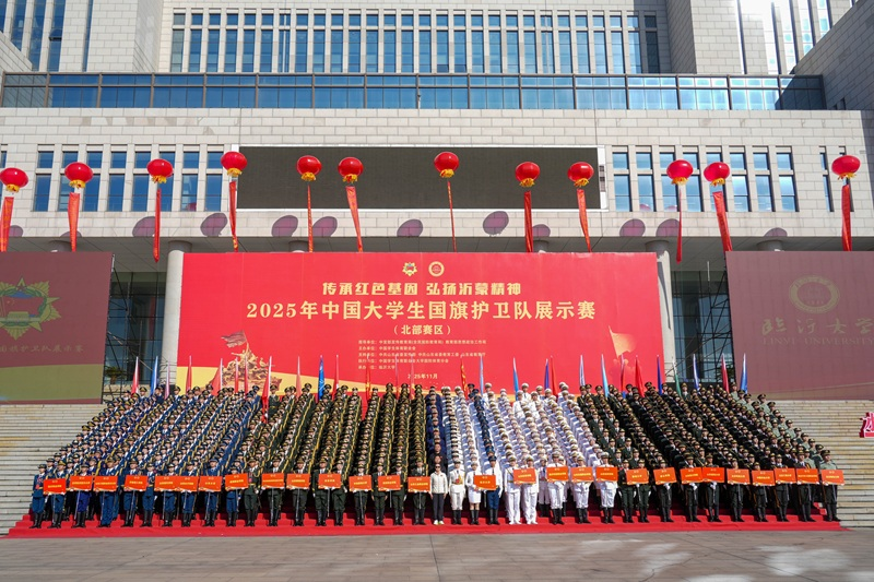 11月10日-12日,由中宣部宣传教育局(全民国防教育局)、教育部思想政治工作司指导,中国学生体育联合会主办的2025年中国大学生国旗护卫队展示赛(北部赛区)在山东省临沂市临沂大学举行,共有来自北部赛区的29支队伍700余名师生参赛。